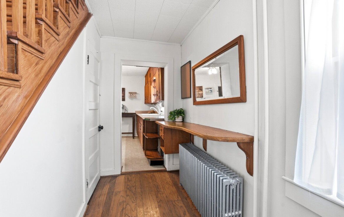 Entry Hall Wood floor, stairs to basement, 1 window.